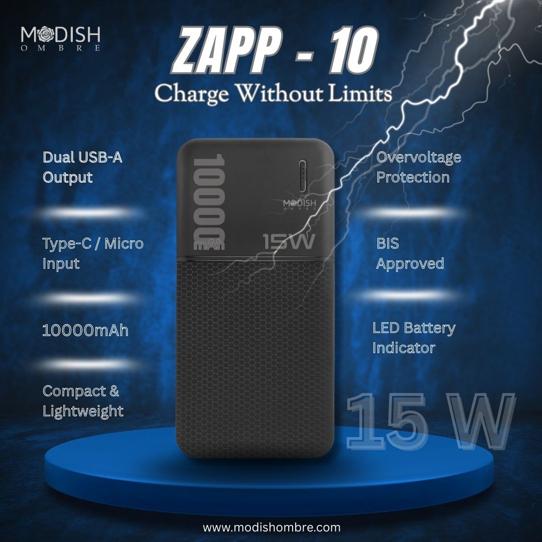 Product Information The ModishOmbre® ZAPP-10 Power Bank 10000mAh is a smart, sustainable, and travel-ready power solution built for modern explorers, outdoor enthusiasts, and everyday users. Whether you're commuting in the city or camping off the grid, this portable charger ensures your devices stay powered anytime, anywhere. Designed with a high-capacity lithium polymer battery, it delivers 15W total output for quick and efficient charging of smartphones, tablets, earbuds, Bluetooth speakers, and more. The rugged and compact design is made for travel, with a built-in LED flashlight that helps during night-time usage, blackouts, or outdoor navigation. The unit also includes advanced safety features to prevent overcharging, overheating, and short circuits, offering reliable and secure charging every time. With its eco-conscious solar charging capability, multi-device support, and rugged portability, the ModishOmbre ZAPP-10 Power Bank is your perfect tech companion for daily commutes, trekking trails, road trips, and emergency preparedness.
